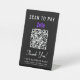 Einfaches schwarzes modernes Tischschild für Ihr Unternehmen mit einem Zelle QR Code für Kunden, um nach Zahlungen zu suchen. Fügen Sie Ihren QR-Code, Ihren Firmennamen, Ihre Telefonnummer und Ihre Straßenanschrift in einfacher weißer Typografie hinzu.