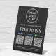 Einfaches modernes schwarzes Tischschild für Ihr Unternehmen. Geben Sie Ihre URL Website Links zu Venmo, Paypal und CashApp ein, um QR-Codes für Kunden zu erstellen, um nach Zahlungen zu suchen. Fügen Sie Ihr Logo und Ihren Firmennamen, Ihre Telefonnummer und Ihre Straßenanschrift in einfacher weißer Schrift hinzu.
