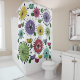Dieser Duschvorhang hat ein skandinavisch inspiriertes Design von Blume aus Kreise, Ovalen und Halbkreisen mit Sternexplosionen und Blätter in Winkeln, Gelb, Grün, Türkis, Magenta, Rost und Blau.