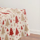 A charming Scandinavian Christmas pattern featuring red and beige stylized trees with scattered snowflakes on a cream background. This minimalist festive design evokes cozy winter forests and the timeless simplicity of Scandinavian holiday style.
