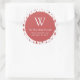 Dieser moderne Aufkleber mit Rücksendeadresse ist mit einem staubigen Rose-Kreis auf einem skandinavisch inspirierten Muster aus rosa, Rose und bordeauxfarbenen immergrünen Pinienbäumen auf weißem Hintergrund versehen. Personalisieren Sie das Design mit Ihrem Monogramm Initial- und Familiennamen in einem Schriftart mit weißen Serifen, mit Ihrer Adresse unten in Serif.