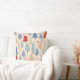 A cozy Scandinavian forest pattern throw pillow featuring hand-drawn trees in soft red, blue, and beige tones. This charming winter woodland design blends autumn warmth and Christmas cheer, perfect for seasonal projects and festive themes. Ideal for those who love modern rustic, minimalist, and cozy holiday styles.