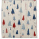 A cozy Scandinavian forest pattern shower curtain featuring hand-drawn trees in soft red, blue, and beige tones. This charming winter woodland design blends autumn warmth and Christmas cheer, perfect for seasonal projects and festive themes. Ideal for those who love modern rustic, minimalist, and cozy holiday styles.