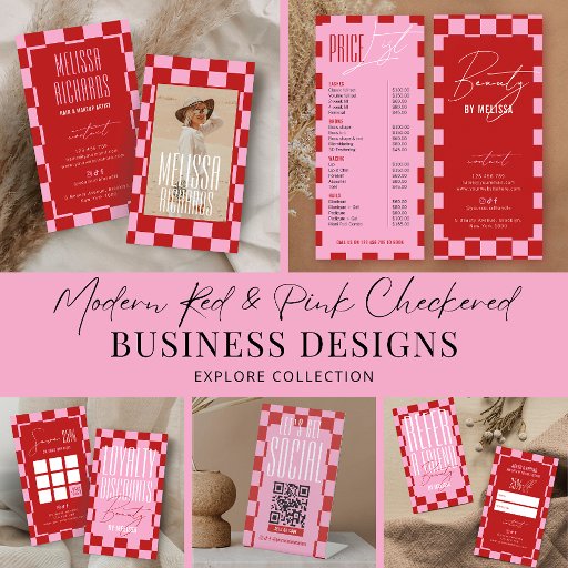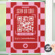 Trendy retro QR Code window cling with girly pink & red checkered background and modern fonts. This groovy shop window decal include a trendy phone design with space for your name or logo, scannable QR code and contact details. You can use this window vinyl poster to promote your website, connect with customers or make it easy for customer to see your menu or price list, simply add your custom URL and make your scannable window cling.