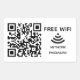 Personalisiertes kostenloses WiFi Business qr Codezeichen in Schwarz und Weiß ist ein moderner, einfacher und minimaler QR Code auf einem Schild, mit dem Sie Ihre Gäste WiFi-Verbindung zu teilen. Die perfekte WiFi zu unterzeichnen mit QR-Code, Ihrer Website oder Social Media QR Code-Zeichen. Es ist perfekt für jeden berufliche mit einer Straßenfront-Shop oder Büro: echter Anwesen-Agent, Salon, Friseur, kleines Business Social Media-Zeichen.. Klicken Sie auf "Anpassen", um Ihren WiFi-Netzwerknamen und Ihr Passwort durch Ihren eigenen QR-Code zu ersetzen.