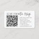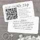 Vereinfachen Sie die UAWG-Antworten und liefern Sie wichtige Details mit schicken, modernen QR Code Gehäuse Karten. Der gesamte Text ist einfach anzupassen, einschließlich der Formulierung "scanne mich auf uAwg". Um Ihren eigenen QR-Code mit dem Generator zu erstellen, geben Sie einfach die URL der Website in die Vorlage ein. Durch Scannen der Karte mit ihren Handys, werden die Gäste direkt auf der Website der Hochzeit zu antworten auf die Einladung. Ein Online-uAwg verringert die Wahrscheinlichkeit, dass die Karten in der E-Mail verloren gehen. Es ist auch vielseitiger, da man detailliertere Informationen frage, wie zum Beispiel Essensauswahl, Lebensmittelallergien und Gesangswünsche. Alle Antwortinformationen können personalisiert oder gelöscht werden. Das Schwarz-Weiß-Design zeichnet sich durch ein niedliches Herz, moderne minimalistische Typografie und handgeschriebene Schriftzeichen-Kalligraphie aus. Diese Karte ist eine stilvolle Möglichkeit, Hochzeitsgäste fragen, um freundlich auf Ihre bevorstehende Feier zu antworten.