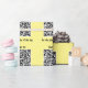Verknüpfen Sie den QR-Code auf diesem Packpapier mit jeder Website! Zwei Zeilen anpassbarem Text über und unter dem QR-Code. Große Aufmerksamkeit bekommen!