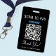 Einfaches schwarzes Abzeichen für Ihr Unternehmen, um Zahlungen unterwegs mit einem Venmo-QR-Code für Kunden zum Scannen zu sammeln. Laden Sie Ihren Venmo-QR-Code hoch und fügen Sie Ihren Unternehmensnamen oder anderen Text in moderner weißer Schrift hinzu.