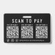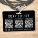Erhalten Sie überall dort, wo Sie Geschäfte machen, bezahlt mit diesem sauberen, professionellen schwarzen Scan-to-Pay-3-Zahlungs-QR-Codes-Badge. Dieses leichte Abzeichen ermöglicht es Kunden, mit einem schnellen Scan sofort zu zahlen - perfekt für mobile Dienste, hektische Veranstaltungen und Checkout auf der Durchreise. Das minimalistische Layout enthält einen klaren Aufruf zum Scannen und Zahlen, 3 QR-Codes, Ihre Facebook-, Instagram- und TikTok-Social-Media-Handles und moderne weiße Schrift auf jeder Seite. Laden Sie Ihre QR-Codes hoch und fügen Sie Ihre Zahlungs-App-Namen, Ihren Geschäftsnahmen und Social-Media-Handle für ein poliertes, markenorientiertes Aussehen hinzu. Ideal für Händler, Künstler, Barkeeper, Friseure, Make-up-Artisten, Lieferfahrer, Markthändler und Eventpersonal, hält dieses tragbare Zahlungsabzeichen den Checkout schnell, kontaktlos und be