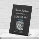 Benutzerdefiniertes Tischschild für Ihr Unternehmen mit Ihrem Venmo-Code für Kunden, um nach mobilen Zahlungen zu suchen und Ihren Namen oder Ihre Marke in einem stilvollen Signaturskript dargestellt. Laden Sie Ihren QR-Code hoch und fügen Sie Ihre Kontaktinformationen in sauberer weißer Schrift hinzu.