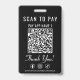 Erhalten Sie überall dort bezahlt, wo Sie Geschäfte machen, mit diesem sauberen, professionellen schwarzen Scan-to-Pay-2-Zahlungs-QR-Codes-Abzeichen. Dieses leichte Abzeichen ermöglicht es Kunden, mit einem schnellen Scan sofort zu zahlen - perfekt für mobile Dienste, hektische Veranstaltungen und Checkout auf der go. Das minimalistische Layout enthält moderne weiße Schrift, einen fetten "Scannen zum Bezahlen"-Aufruf, deutlich zentrierte QR-Codes auf jeder Seite, eine freundliche "Danke"-Nachricht und Ihre Facebook-, Instagram- und TikTok-Social-Media-Handles. Ideal für Händler, Künstler, Barkeeper, Friseure, Visagisten, Lieferfahrer, Markthändler und Eventpersonal, hält dieses tragbare Zahlungsabzeichen den Checkout schnell, kontaktlos und bequem - kein Platz auf der Theke benötigt.