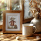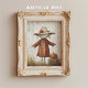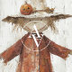 Diese bezaubernde Wandkunst zeigt eine rustikale Schrecke, die in einem verwitterten, orangefarbenen Mantel gekleidet ist, und einen breiten Hut, der mit einem winzigen, geschnitzten Kürbis verziert ist. Die Skarecke steht fröhlich neben einem kleinen Heu-Ball mit einem lächelnden Jack-o'-Laterne und schafft so eine herzliche und skurrile Halloween-Szene. Die Struktur der Pinselstriche und der neutrale, verwitterte Hintergrund sorgen für ein gemütliches, Vintages Ambiente, das sich perfekt in die saisonale Dekoration für Herbst- und Halloween-Liebhaber einfügt.