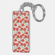 Ein, mit Scarlet-Feld-Mohnblumen- und Knospenmustern auf einem weißen Hintergrund zu personifizieren Chic länglicher AcrylSchlüsselanhänger, den Sie ändern können, wenn Sie wünschen. Von einer handgemalten Papiercollage durch Judy Adamson, ist dieses helle, Blumenmuster ein Teil von dem vornehmen u. fängt Painterly "Mohnblume" Sammlung auf.