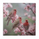"Scarlet Trio: Rote Finken unter rosa Blüten" Fliese