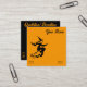 Square business card or personal call card in orange background with a scary flying witch. On the back side of the card, the colors are reversed. It is easy to personalize both sides with the details of your own witch or magic business. Clip art from Zazzle Fonts composition by Alma Wad It comes 100 per pack.
