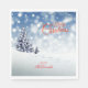 A colorful, wintry napkin for a Christmas party. The design features snow and three snow-covered trees as a background for a "Merry Christmas" image and a name (or names). The name text is easily changed using the template. If additional changes are desired (different type font, color, size or placement) select "Personalize this template" then select "Edit using Design Tool." See Options for other styles and sizes of napkins.