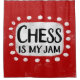 "Schach ist mein Jam" ist ein lustiges Textdesign mit weißer Akzent-Form, umgeben von weißen, weißlichen, weißlichen, weißlichen, weißgestrichenen Punkten.