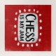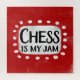 "Schach ist mein Jam" ist ein lustiges Textdesign mit weißer Akzent-Form, umgeben von weißen, weißlichen, weißlichen, weißlichen, weißgestrichenen Punkten.