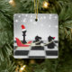 Dieses witzige Schach-Weihnachtsgeschmuck zeigt den Schlitten und Rentier des Weihnachtsmannes. Der Weihnachtsmann ist das King-Schachstück mit einer Weihnachtsmannmütze und die Rentiere sind zwei Ritterschachfiguren. Sie befinden sich auf einem Schachbrett vor einer Winterschneeszene mit Ferienlicht. Personalisieren Sie den Rücken mit einem Namen und Jahr!