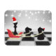 Dieses witzige Schach-Weihnachtsmagnete zeichnet sich durch seinen Schlitten und Rentier aus. Der Weihnachtsmann ist das King-Schachstück mit einer Weihnachtsmannmütze und die Rentiere sind zwei Ritterschachfiguren. Sie befinden sich auf einem Schachbrett vor einer Winterschneeszene mit Ferienlicht.