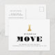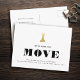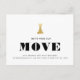 Wir haben uns bewegt! Einfaches typografisches Design für eine bewegende Ankündigungs-Postkarte mit bedrucktem Goldschach (König)-Figuren. Diese minimale und moderne, schwarz-weiße, leicht anpassbare Änderung des Adressennotizes macht es schnell und stilvoll, die Neuigkeiten Ihrer neuen Zuhause zu teilen!