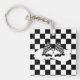 Schachbrett-Flagge und Rennwagen Schlüsselanhänger