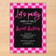 Schachbrett heiß rosa schwarz Lasse Party Sweet 16 Acryl Einladungen. Passen Sie 16 . Geburtstag Let's Party mädchenhaft Geburtstag Einladung mit hellrosa, schwarz und weiß Design. Gekreuzte Quadrate Schwarz-Rosa geometrisches Retromuster. Cooles Vintages Retro-Schachbrett geometrisches quadratisches Fliesenmuster.