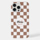 Schachbrett Quadrate mocha braunes Retro Monogram iPhone Case. Personalisieren Sie Ihre individuelle Eingabe und Ihren eigenen Namen. Cooles, hintergrundgezogenes geometrisches Quadratmuster.
