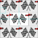 Schachbrett-Rennen-Flagge u. rotes Rennen-Auto Stoff