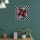Schachbrett Vortex, rot, weiß und schwarz Poster