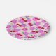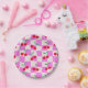 Dies ist ein niedliches rotes Kirschmuster auf rosa und weiße verdrehte Schachbretter