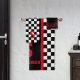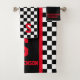 Überqueren Sie die Ziellinie in der Badezimmerdekoration mit dem Set des karierten Racing Stripe Red & Black Badehandtuchs. Personalisieren Sie mit Ihrem Namen und Initial.