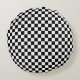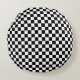 Dieses runde Kissen mit einem zeitlosen Schachbrettmuster, das an die Mitte des 20. Jahrhunderts erinnert. Es wäre eine großartige Ergänzung zu Retro-Party, Spielräumen und Retro-Automobil-Shows.