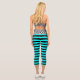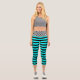 Die Bänder der Leggings sind schwarz-weiß und unten schwarz mit Aqua gestreift.