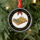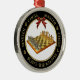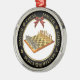 Eleganter "Schachmeister" Premium Silber Rahmen Rundschmuck. Ein wunderschönes Geschenk für Familienmitglieder oder einen Freund, der gerne Schach spielt. Das Ornament enthält ein Schachbrett in der Mitte des goldenen Rahmens mit goldener kreisförmiger Formulierung, die "Schachmeister" mit einem Symbol für jedes Schachstück enthält. Dieses Design ist auch in unserem Shop als doppelseitige personalisierte Keramik-Ornament erhältlich.