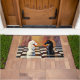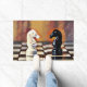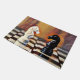 Dieses Schachturm-Design besticht durch klassische Schachfiguren auf einem Schachbrett mit orangen und gelben Farbakzenten.