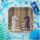 Dieses Schachpapier zeichnet sich durch klassische Schachfiguren auf einem Schachbrett aus.