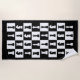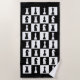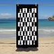 Schwarzes Strandtuch mit schwarz-weißem Schachfigurenmuster im Design.