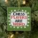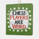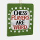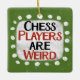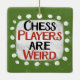 "Schachspieler sind merkwürdig" ist ein niedliches Textdesign in grün mit schwarzem und rotem Text, mit einer weißen Akzent-Form und weißen texturierten weißen, weißlichen, weißen Punkten, die ihn umgeben.