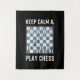 Schachbrettmuster mit dem Sprichwort: Behalt Ruhe und spiele Schach.