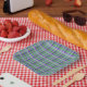 Schachte Karierte Tartan-Streifen auf Lila Pappteller