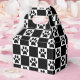 Schwarz-Weiß karierte Gestaltung mit schwarzen Pfosten in den weißen Quadraten.