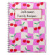 Dies ist ein personalisiertes, speziell für die Familie konzipiertes Notizbuch mit niedlichen roten Kirschmustern auf rosa und weiß gedrehten Schachbrettern. Sie können den Namen des Designs ändern, indem Sie die Schaltfläche Personalisieren verwenden