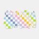 Abstrakte Digitalkunst von weißen und pastellfarbenen Quadraten in karierten Formationen.