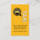 Die Abdeckung ist mit einem schwarz-gelb geprüften "TAXI"-Design versehen. In der Mitte befindet sich ein goldenes Taxi-Logo, das Sie benutzen können. Hinter einem gelben Taxideckel befindet sich oben ein goldenes Taxi-Logo (das in eine Sprechblase umgewandelt wird), das Sie benutzen können. Daneben befindet sich eine vertikal gehaltene Beschriftung "TAXI". Danach folgen die Kontaktdaten und eine weitere Beschriftung an der Kartenbasis ; Sie können beide Beschriftungen ändern, um Ihren eigenen Servicebedarf Anzug. Eine großartige helle Karte für Taxifahrer. #taxicab #taxidriver #taxiservice #driver #privatedriver #designateddriver #yellowtaxi #rideshare #chauffeur