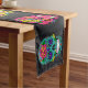 Dieses bunte, grinsende Zuckerschädel-Set auf einem dunklen Waldhintergrund macht eine festliche Tabelle und setzt Sie in eine gute Stimmung ein. Dieser Läufer hilft Ihnen, den Geist von EL Día de Los Muertos zu feiern--der Tag der Toten--nicht nur vom 31. Oktober bis zum 2. November, aber das ganze Jahr hindurch. Die grinsenden Gesichter der Schädel erinnern Sie das, "Heu más tiempo que vida"-- Es gibt mehr Zeit als das Leben. : >) für andere Größen des Läufers und der zusammenpassenden Tischsets, PapierTeller und der Servietten, sehen Sie den Abschnitt Día de Los Muertos meiner "Feiertags-/Gelegenheits" Speicherkategorie.
