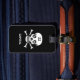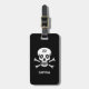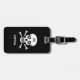 Schädeln auf dem schwarzen Gepäckanhänger. Texte und Nummern sind personalisiert.