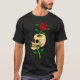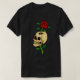 Ein klassisches Vintages Tattoografiebild eines Schädels mit dem Stamm einer rote Rose, der durch ihn wächst.