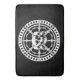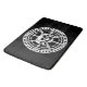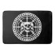 Drei böse Schädel umgeben von Schwertern auf schwarzem Hintergrund.