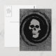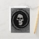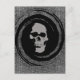 Ein einsamer, grauer Schädel sitzt in einem wirbelnden schwarzen Leere auf einem statisch aussehenden grauen Hintergrund.